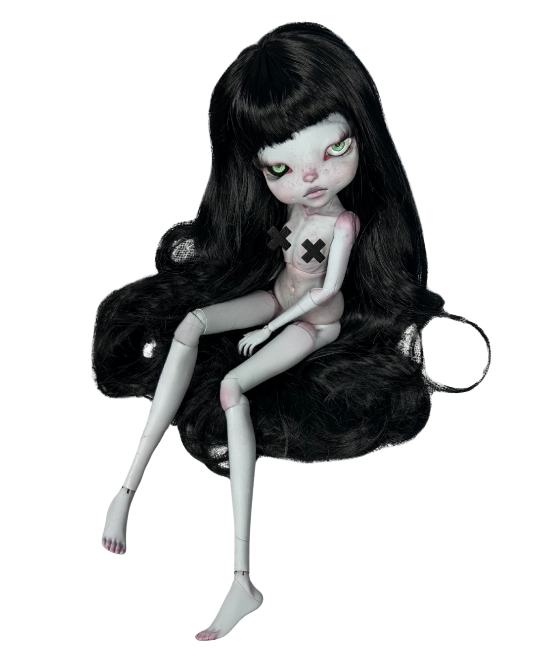 ☾ vespera's wig is removable and her 18mm handmade eyes are interchangeable by removing her wig and scalp.